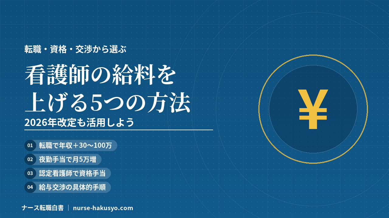 この記事では、転職・夜勤活用・資格取得・給与交渉・2026年診療報酬改定の活用という5つのアプローチを、具体的な金額と私の体験談を交えて解説します。